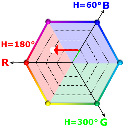 | R≧G≧B | 180°+60° | 180°~240° |