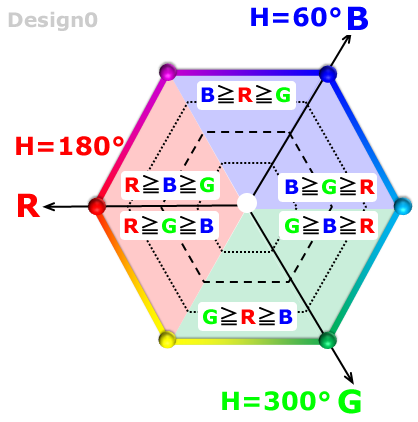 「HSL正六角形」をRGBの大小関係で6エリアへ分類